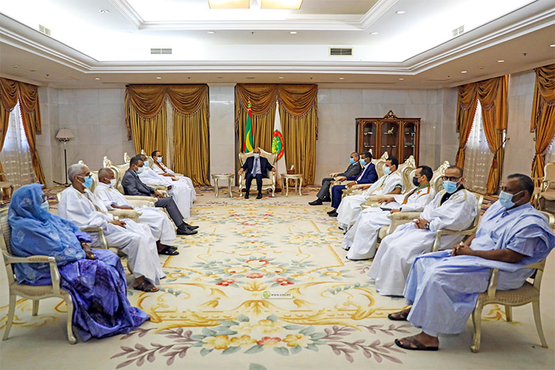Le Président de la République, Son Excellence Monsieur Mohamed Ould Cheikh El Ghazouani a reçu en audience, mardi au palais présidentiel, les députés du parti l’Union pour la République(UPR) de l’Assaba.L’audience a porté sur le rôle du pouvoir législatif dans le renforcement de la démocratie, l’édification d’un État de droit et le respect du principe de la séparation des pouvoirs. Il a été question aussi de l’intérêt de consacrer le rôle représentatif des députés à travers l’écoute des problèmes et préoccupations des populations de leurs circonscriptions électorales.